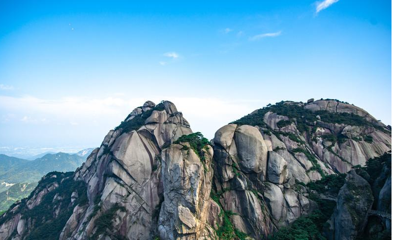 天柱山有42座山峰,山上遍布蒼松、怪石、奇洞、飛瀑、深潭?!胺鍩o不奇,石無不怪,洞無不杳,泉無不吼”。天柱山素以“西關(guān)秀,東關(guān)險(xiǎn),南關(guān)神秘北關(guān)幽”聞名,而東關(guān)由于地勢(shì)險(xiǎn)要陡峭,險(xiǎn)峰一個(gè)接著一個(gè),對(duì)體力的挑戰(zhàn)較大。天柱山東關(guān)游線自煉丹湖至回音臺(tái)、擂鼓石、雙獅戲球、蜒岫爬壁、天獅峰、鵲橋、奇谷天梯、翠花...